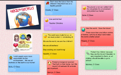 | Μηνύματα που άφησαν οι μαθητές σε μορφή πίνακα στο iPad. |
