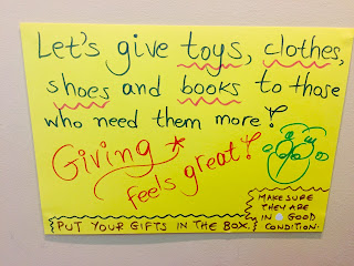 Συγκεντρώσαμε ρούχα, παπούτσια, παιχνίδια, βιβλία, όλα σε καλή κατάσταση και με μια ευχή γραμμένη, για τις οικογένειες που τα χρειάζονται περισσότερο από εμάς αυτές τις ημέρες. Στο τέλος του 2018, όλα δόθηκαν στη Διακονία Αγάπης που με τόσο μεράκι φροντίζει πολύ κόσμο εδώ και καιρό. Ευχαριστούμε τους γονείς και τα παιδιά που έσπευσαν να βοηθήσουν, φέρνοντας κάθε λογής καλούδια!