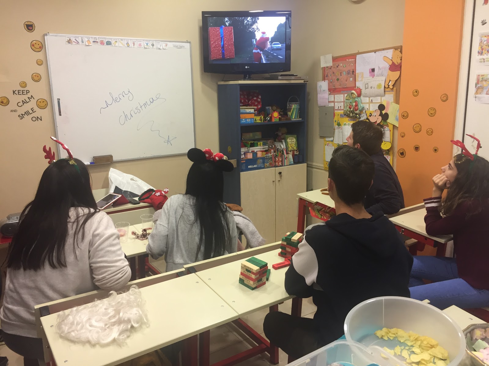 Και πάρτυ με τους μεγαλύτερους μαθητές μας, με τα κλασικά Αγγλικά Χριστουγεννιάτικα τραγούδια σε καραόκε για ώρες, πολλά παιχνίδια με άφθονο γέλιο, όπως το πολύ γνωστό Jenga, καρτούλες και φυσικά, γλυκά κεράσματα για τα πιο γλυκά πρόσωπα! Είμαστε ευγνώμονες και τυχεροί που σας έχουμε κοντά μας. Να είστε πάντα καλά! Καλές γιορτές σε όλους! Όλες οι φωτογραφίες εδώ.