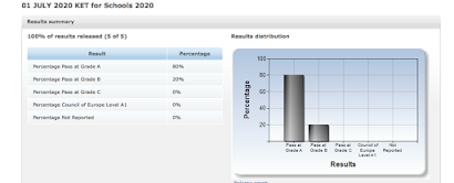 Λάβαμε επίσης και τα αποτελέσματα για PET (B1+) και FCE (B2) Cambridge, με κάποιους υποψηφίους να κατακτούν άνετα Α στο PET και Β στο FCE. Η υπερηφάνεια των διδασκόντων δεν περιγράφεται! Να πούμε βεβαίως θερμά συγχαρητήρια στα μικρούλια μας που διέπρεψαν σε όλους τους τομείς των εξετάσεων Cambridge (Starters, Movers, Flyers) για μικρότερες ηλικίες, με σκορ 5 στα 5 σε όλα τα χαρτιά.