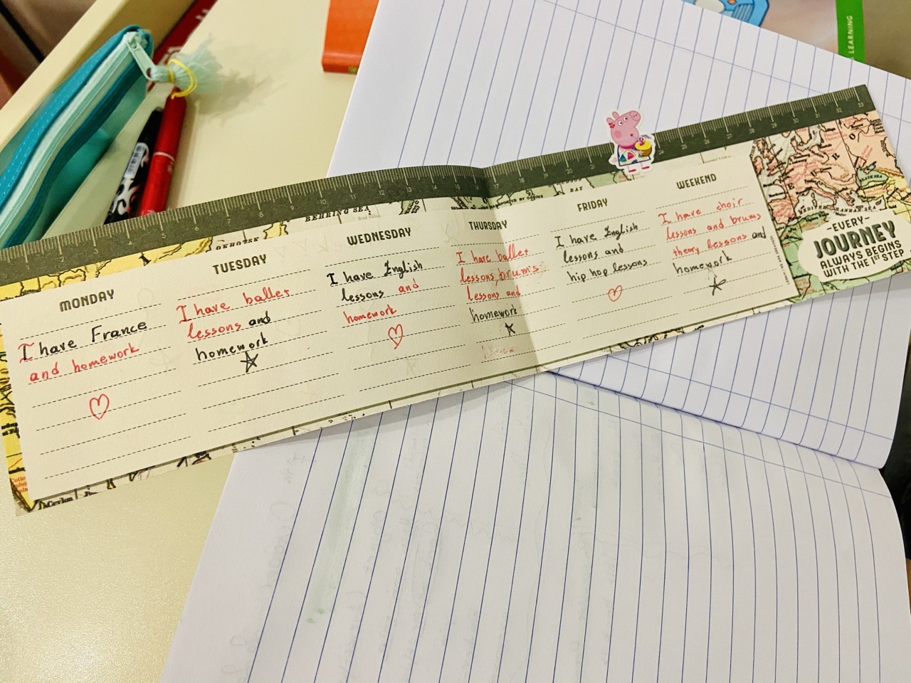 🌹 Το εβδομαδιαίο μας πρόγραμμα όμορφα γραμμένο και τοποθετημένο στο τετράδιο