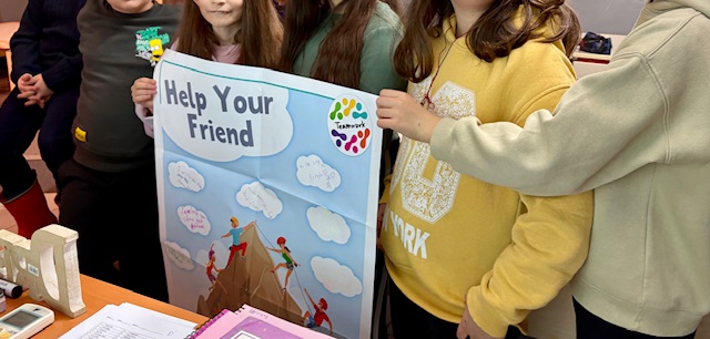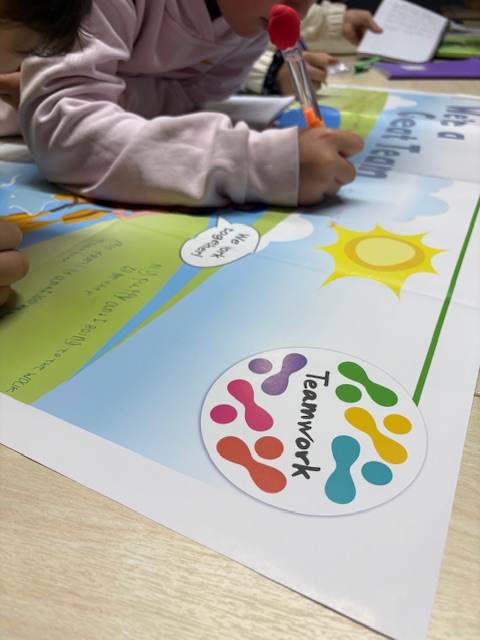 Τα πιο μικρούλια μας μέχρι που έφτιαξαν συνεργατικά αφίσα μπροστά στο ενθουσιώδες κοινό μας με πολλές δικές τους ιδέες για τα οφέλη της ομαδικότητας και αλληλοβοήθειας. Οι πιο μεγάλοι, δε, συνεργάστηκαν με άνεση στην παρουσίαση μέρους των προφορικών ασκήσεων που κάνουμε κατά την προετοιμασία μας για σοβαρά διπλώματα.