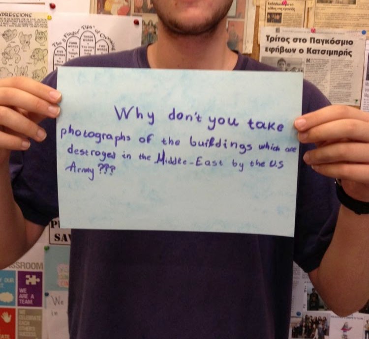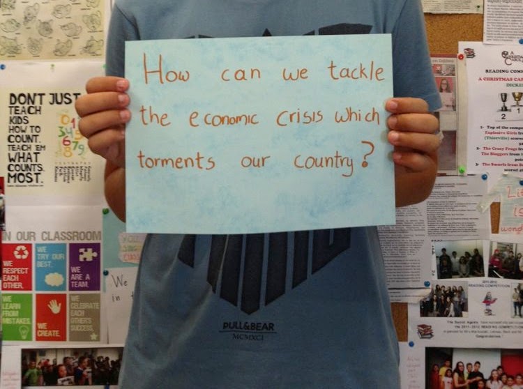 The next thing I knew was that my C2-level students were eager to do exactly the same in an attempt to express their thoughts on topics discussed in class or the current affairs, which would also allow them to exploit the new vocabulary in a more creative way. Therefore, we proudly present you with the photos taken today, depicting certain questions which cannot be easily dealt with. You can click on the images to view them in a larger size.