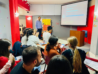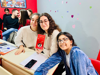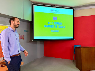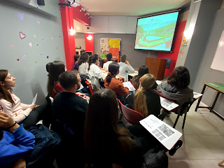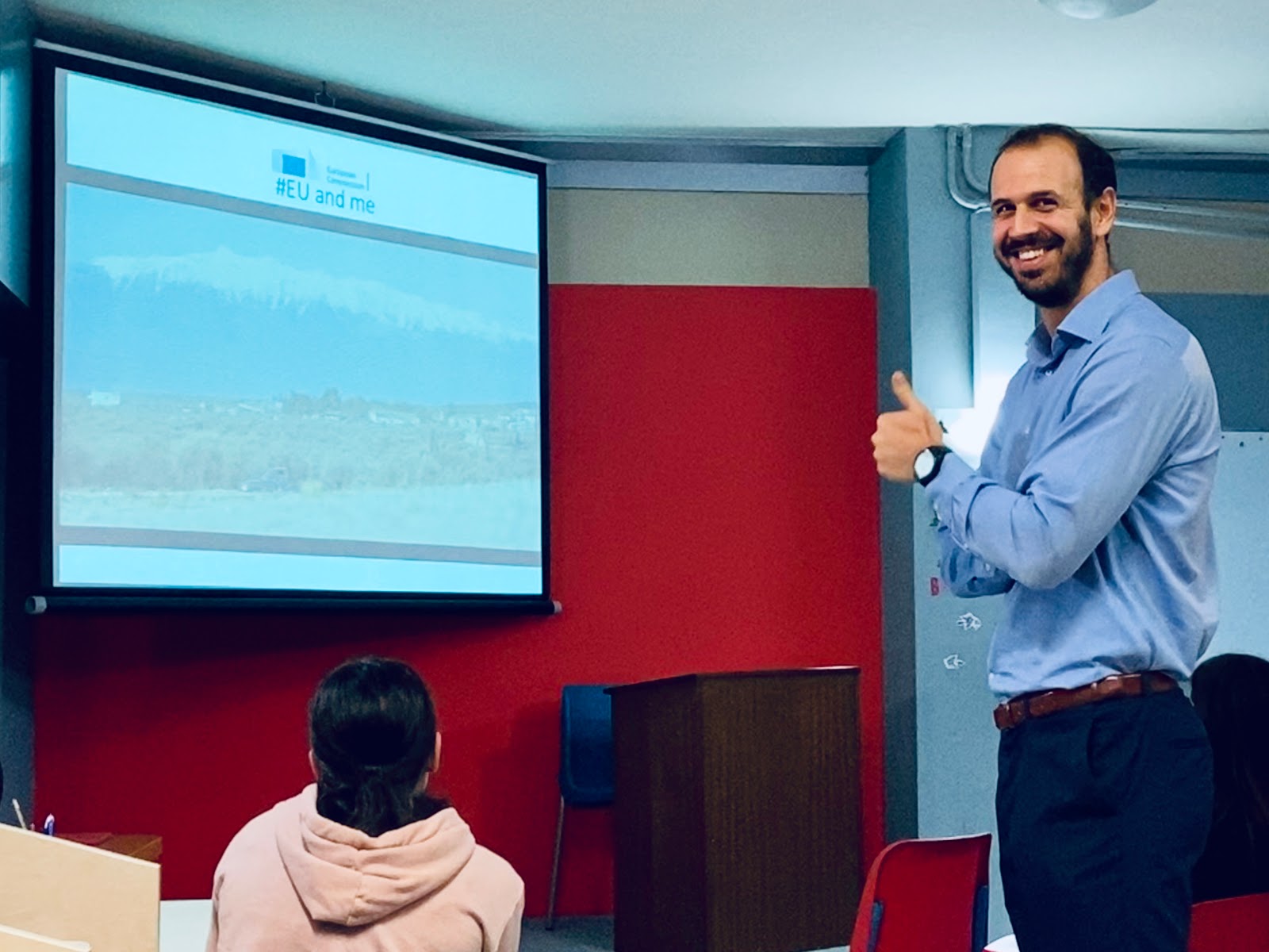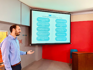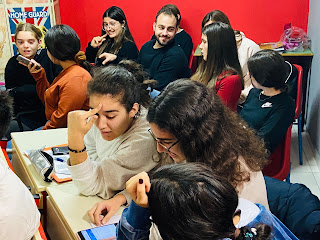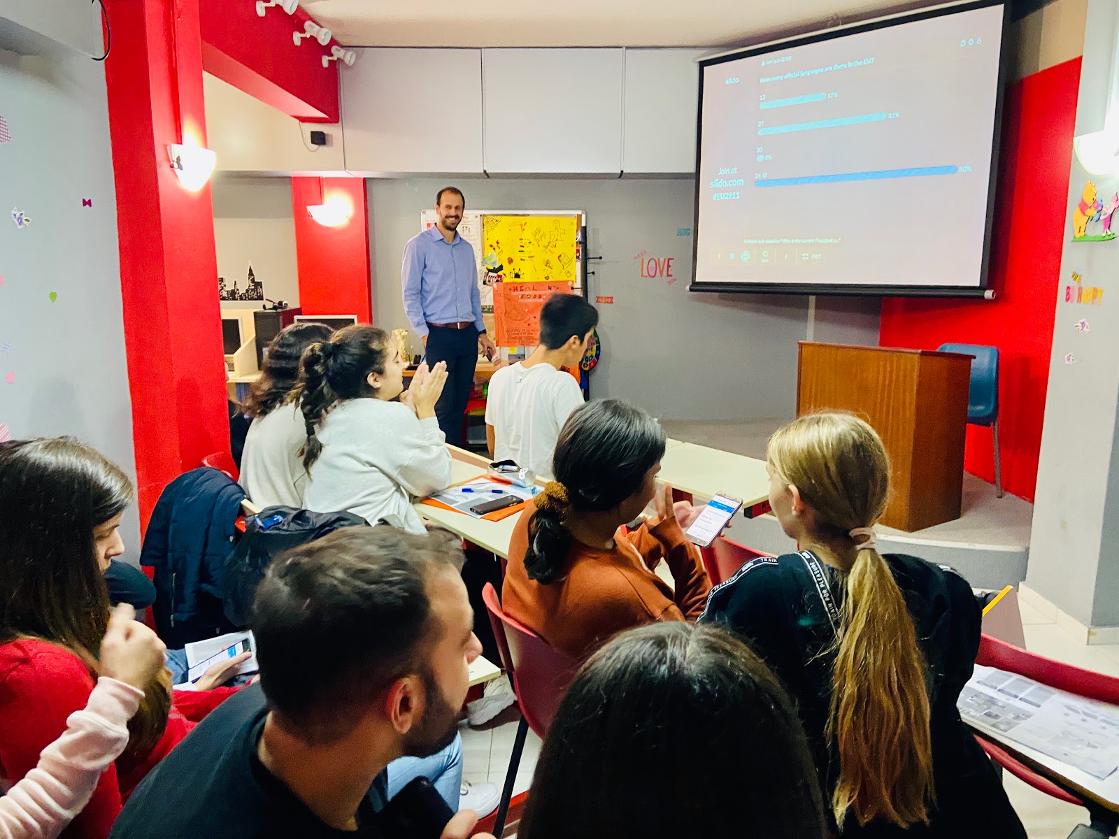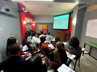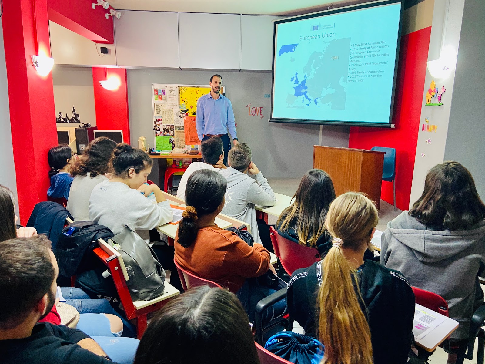 During his talk called E.U. Back To School, Manolis Katsougris was an eloquent presenter who established instant rapport with his audience, demystifying concepts such as various European Union’s policies, climate change and use of plastic. Our advanced learners were enchanted by the enlightening topics, which are also important exam questions. Thus, there was a double benefit for those future exam candidates, who took meticulous notes and reflected on the projected videos, some of which were: